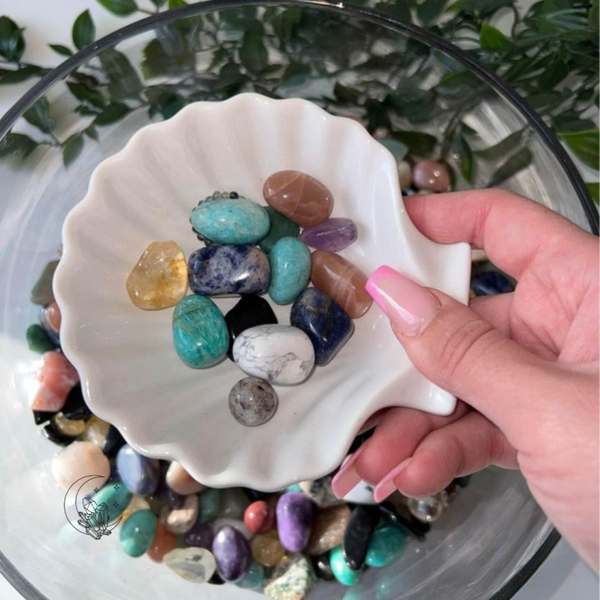 Confettis de pierres précieuses est un ensemble unique de pierres naturelles qui comprend un mélange de pierres roulées, de pendentifs et de bagues en pierres semi-précieuses, ainsi que des billes de pierre demi-précieuses telles que la sodalite, la citrine, l'amazonite, la howlite, le lépidolite et bien d'autres encore. Chaque scoop de Confetti est soigneusement sélectionné pour offrir une variété de pierres naturelles de haute qualité. Les pierres semi-précieuses utilisées dans chaque scoop sont uniques, avec des variations de couleur, de taille et de texture qui les rendent authentiques. Avec le mix des pierres, vous pouvez ajouter une touche de couleur, de sophistication et de beauté naturelle à votre espace de vie ou à votre style personnel.