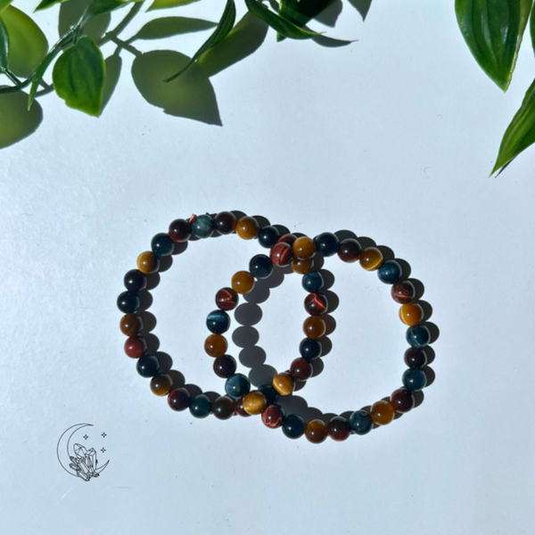 Ce bracelet est spécialement conçu pour offrir une protection énergétique aux enfants. Il est composé de trois pierres précieuses : l'œil de tigre, l'œil de faucon et l'œil de taureau, qui possèdent chacune leurs propres vertus protectrices. Voici un résumé des propriétés de ces pierres :