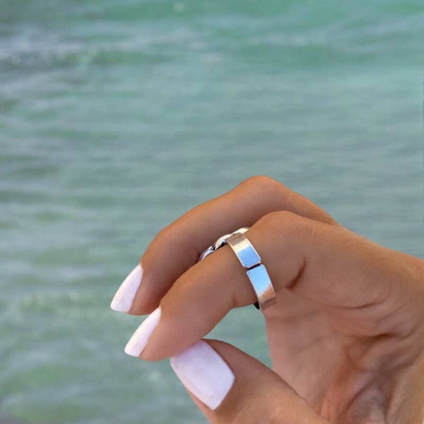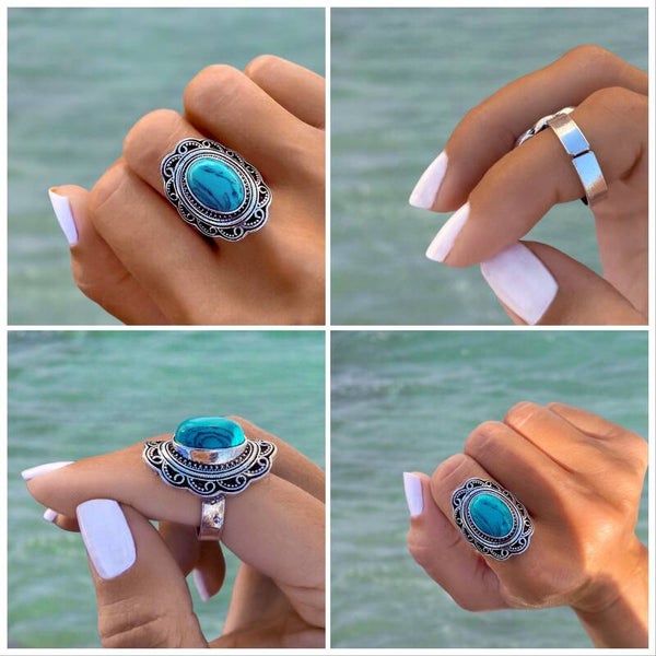 Bague style boho réglable en turquoise en laiton argenté de haute qualité avec une finition antique/vintage.