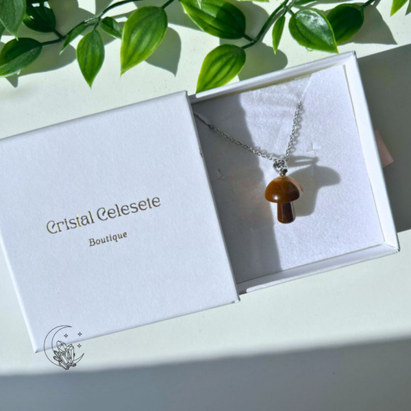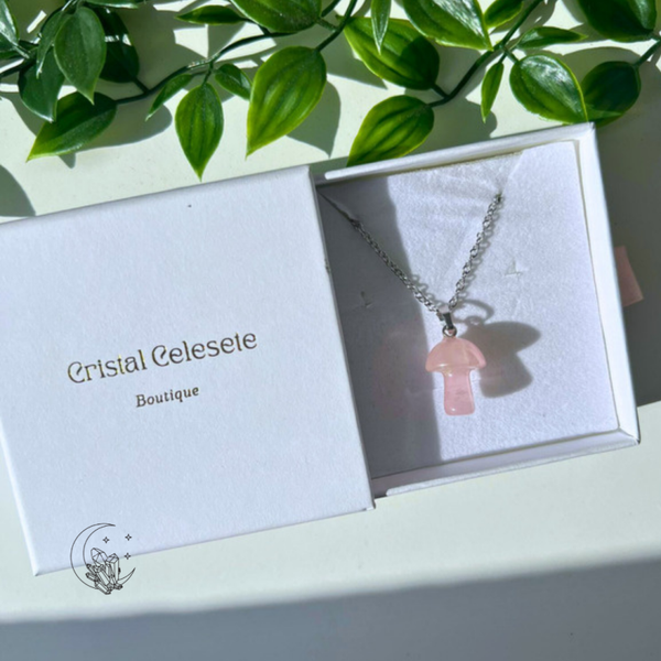 Pendentif Champignon (Quartz rose ,Aventurine, Jaspe rouge, Agate Fleur de cerisier , Rhodonite, Oeil de tigre, Amethyste, Cristal de roche, Cornaline)