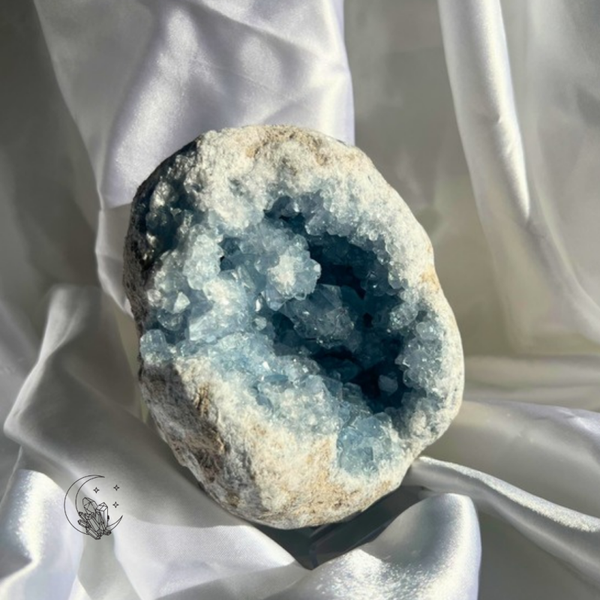 📦 Chaque géode de célestine est unique et apporte une énergie douce et bienfaitrice à son environnement. 💙✨