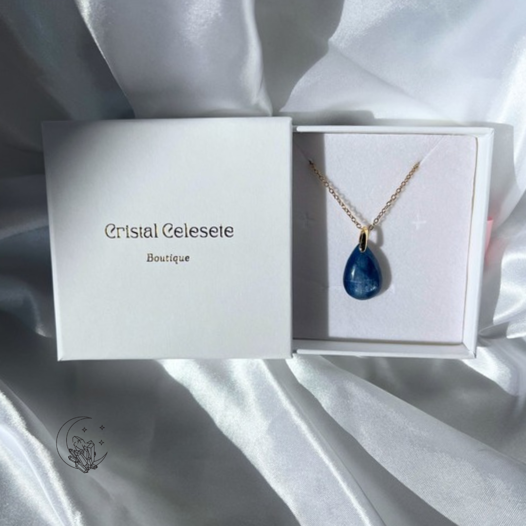 Pendentif Goutte Plate en Cyanite Bleue – Harmonie & Énergie