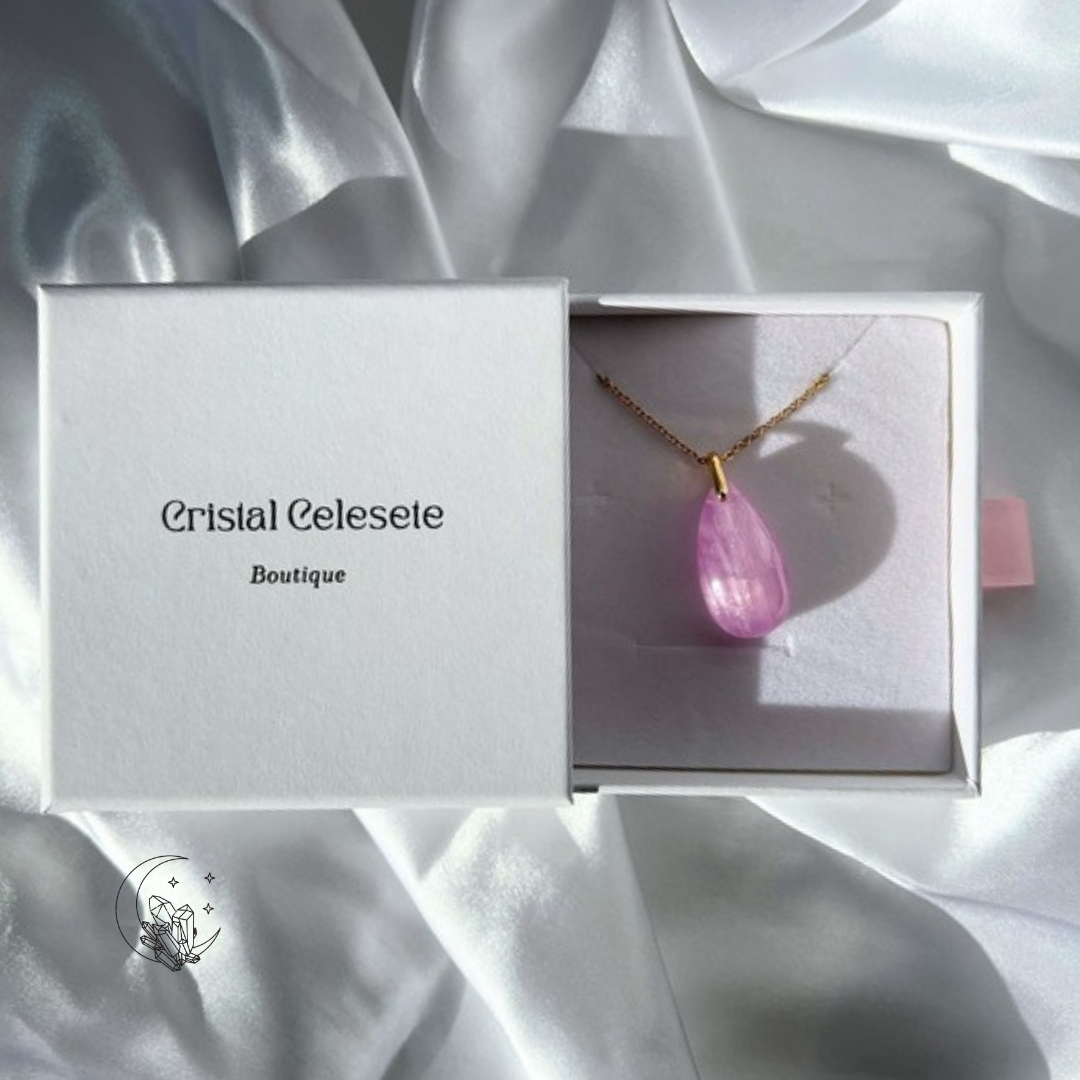 Pendentif Goutte Plate en Kunzite – Amour & Sérénité