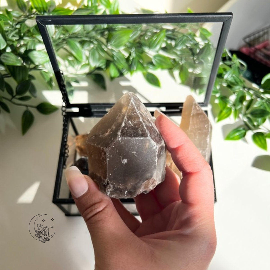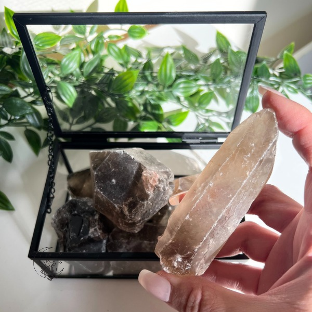 Le quartz fumé est une pierre de protection et d'ancrage, idéale pour dissiper les énergies négatives et apporter calme et stabilité. Il aide à purifier l'énergie ambiante et à renforcer le bien-être émotionnel tout en soutenant la clarté mentale.