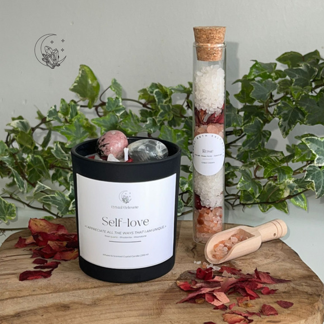 embrassez les délices des soins personnels et un moment de joie avec nos sels de bain pour l'amour de soi. Avec une combinaison de pétales de rose et de sel rose de l'Himalaya, ces sels roses sont idéaux comme cadeau pour la Saint-Valentin ou la fête des mères.